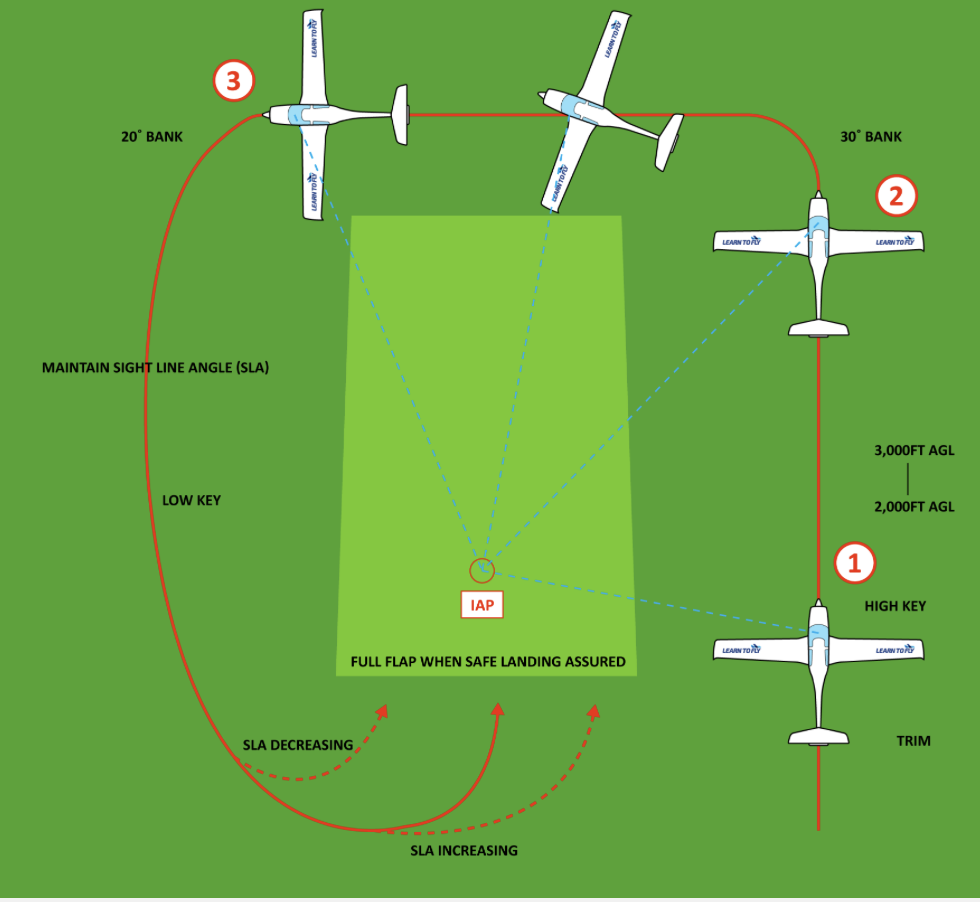 Hi Nate thank you for the safety contribution of your very good book. Over here in the UK we use the so-called constant aspect forced landing technique. It looks quite similar to the T-34 SFO described in your book. Once the aiming point (one third to a half into the selected landing site) has been assured, typically between low key and turning to final, gear and approach flaps would be extended, in sequence and landing flaps on final, bringing the aiming point forward to the beginning of the landing site. During the manoeuvre the aiming point would typically move across from the side to the forward windscreen maintaining a constant aspect. The actual ground track would look like the T-34 depiction [in your book]. Bank angle would be used within sensible parameters to maintain the constant aspect, typically between 15 and 35 degrees.