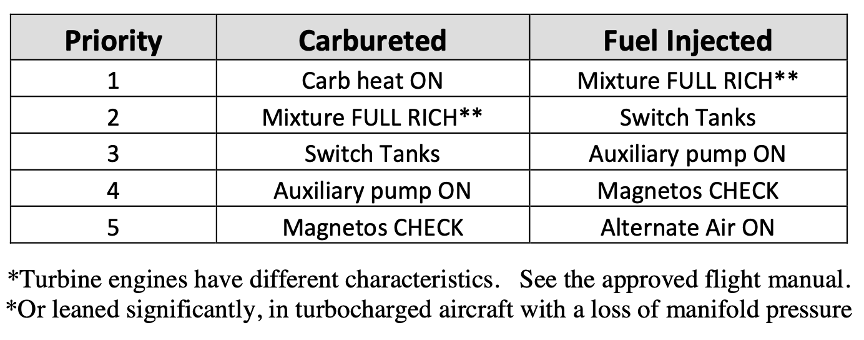 Only then, and if time permits, do whatever is appropriate to the airplane you’re flying. Not all types will have all the controls listed above. The aircraft’s flight manual checklist takes precedence, but very likely it is summarized by the steps in the power priorities table.